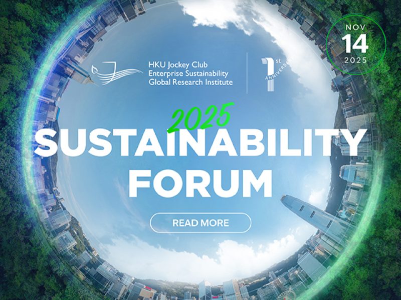 The HKU Jockey Club Enterprise Sustainability Global Research Institute is established by HKU Business School and funded by The Hong Kong Jockey Club Charities Trust, to establish a world-class hub for best practices of Sustainability in Hong Kong, Asia and beyond. Our mission is to promote excellence in the field of Sustainability by bringing together globally distinguished scholars from diverse fields, integrating knowledge and practice, inspiring innovation, fostering collaboration and conducting impactful research. We work in partnership with academics, government departments, NGOs and corporate partners to harness the transformative power of environmental, social and corporate governance to create a sustainable and equitable future.